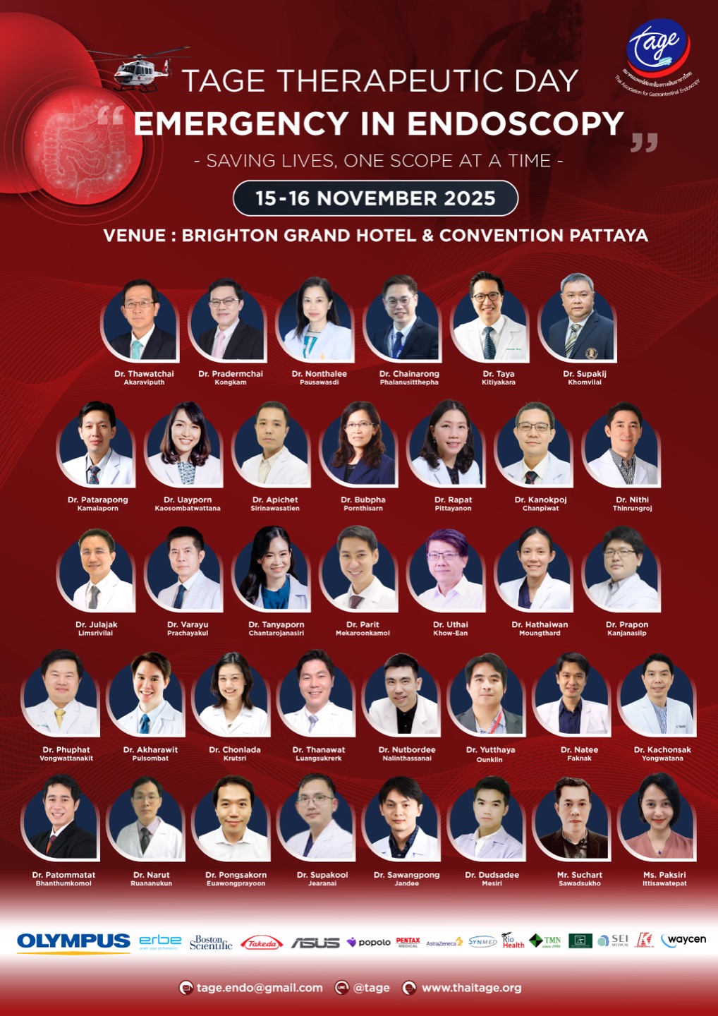 งานประชุม TAGE Postgrad day 2025 Theme : Practical points in gastrointestinal endoscopy วันเสาร์ ที่ 7 มิถุนายน 2568 ...